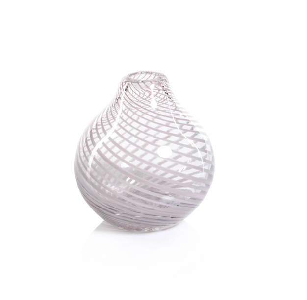 Claire Clear Bud Vases with Blush Swirls - Round