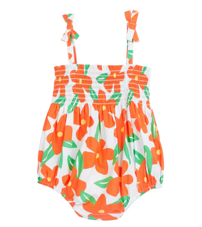 Posh Peanut Spring Blossom Basic Ruffled Spaghetti Romper Light/Pastel Orange