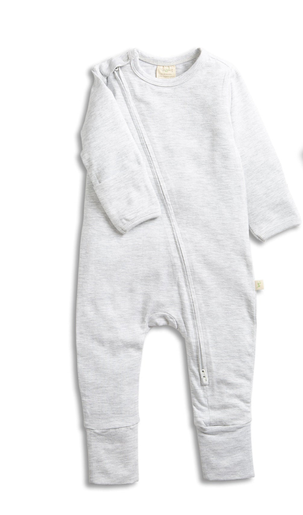 Tiny twig clothes are made of super soft organic cotton that is certified for its organic standards and sustainability. Tiny Twigs zip suits feature a high-quality zip from shoulder to thigh. No bagging under the chin. A supporting back flap to keep the baby's skin safe from getting caught in the zip.