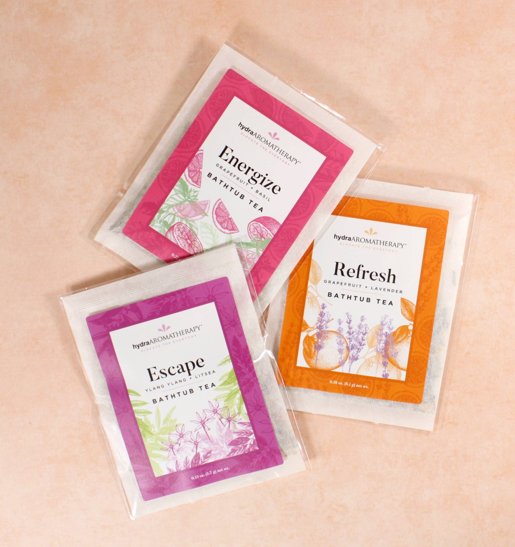 - Each Bathtub Tea is made in the USA with natural ingredients and 100% pure essential oils. Place in hot water to release essential oils for a steam-infused aromatherapy soak.