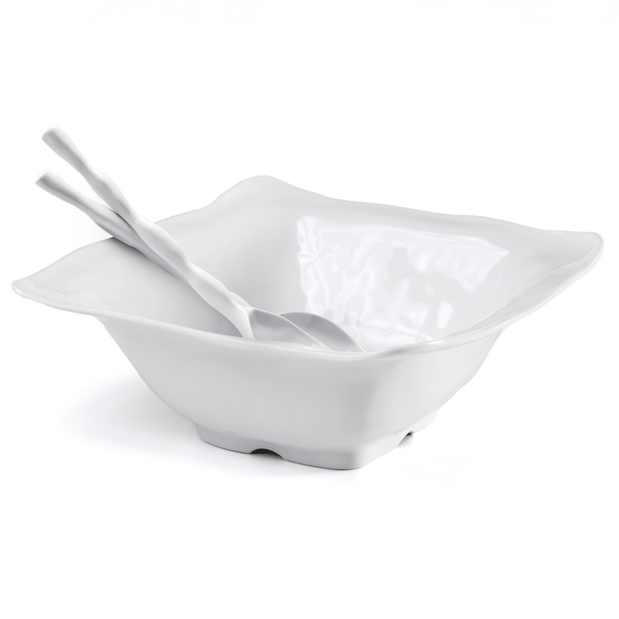 Ruffle White Melamine Square 2pc Salad Serving Set