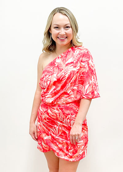 Susana Monaco String Gathered High Low Dress 16-42" - Lovebird