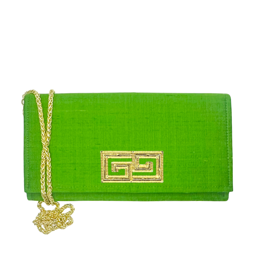 Emerald Dupioni Silk Jess Crossbody - Greek Key