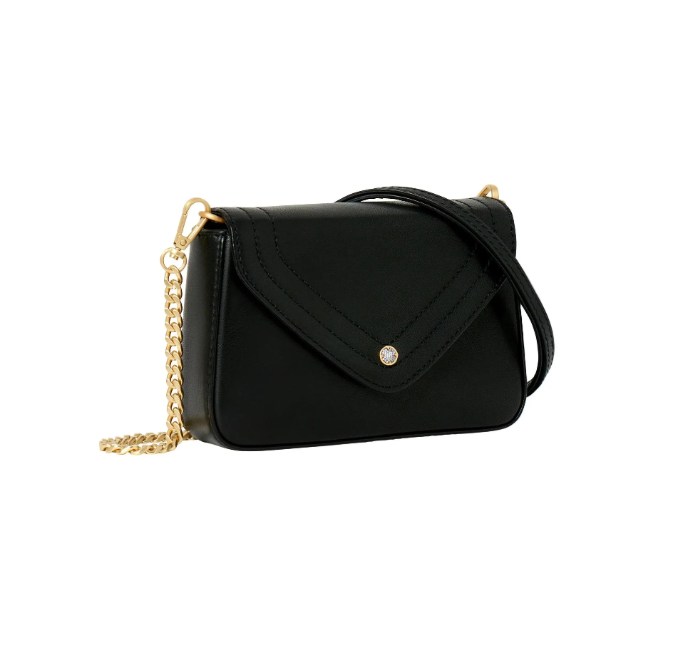 This mini crossbody silhouette mixes metal, leather, and pavé jewelry for a signature FREIDA ROTHMAN “everyday” bag.