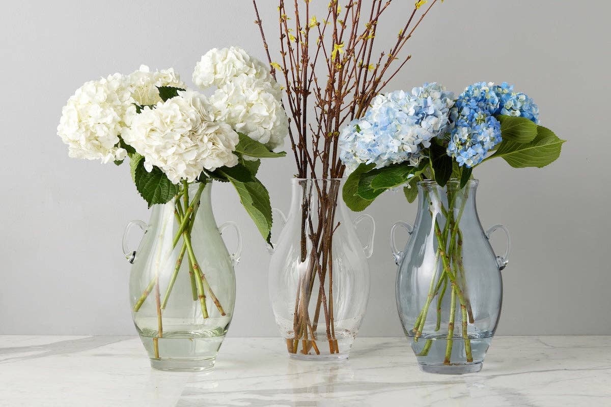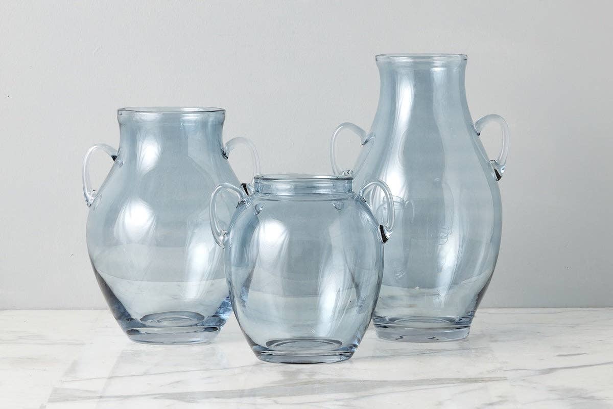 Inspired by antique pottery, this glass amphora is thoughtfully designed for the modern home. The soft, tinted glass showcases the natural beauty of flower stems or decorative objects, while the timeless silhouette adds a touch of old-world charm to any space. Featuring organic curves and sturdy handles, this vessel makes a striking statement, effortlessly combining vintage design with contemporary style.
