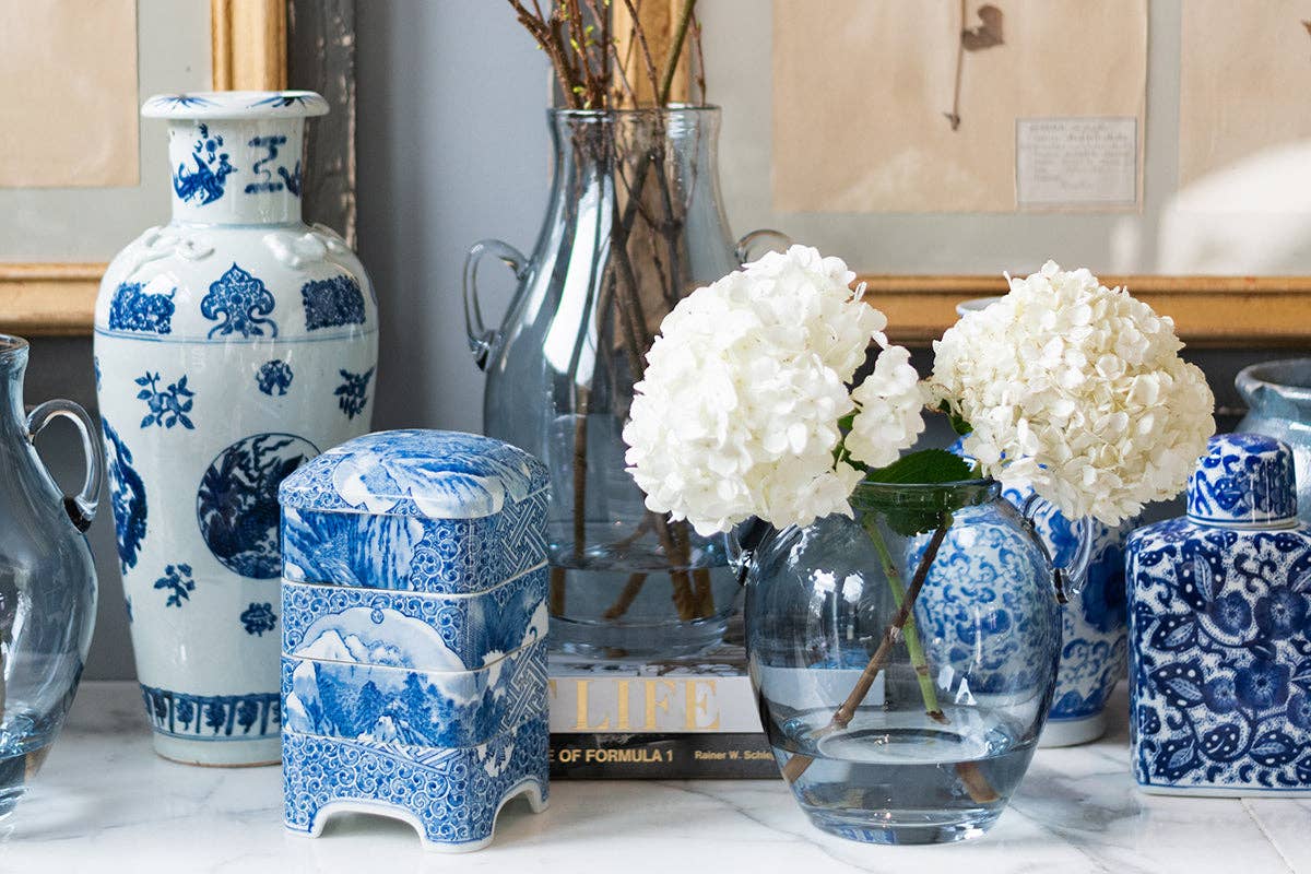 Etu Glass Amphora Flower Vase, Large, Denim Blue