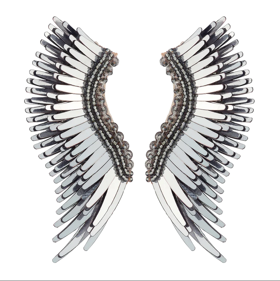 A midi version of our best-selling Madeline earrings in a deep gunmetal color way. Handmade with layers of beading and thoughtfully placed winged sequins, these earrings feature soft colors that are feminine, romantic, and timeless.
