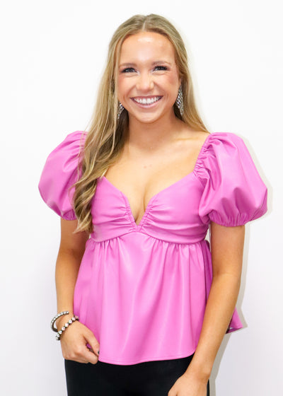Queen of Sparkles Red & White Stripe Cotton Poof Sleeve Tie Top