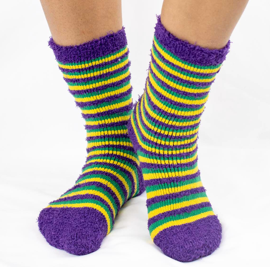Women's Stripe Mardi Gras Fuzzy Socks