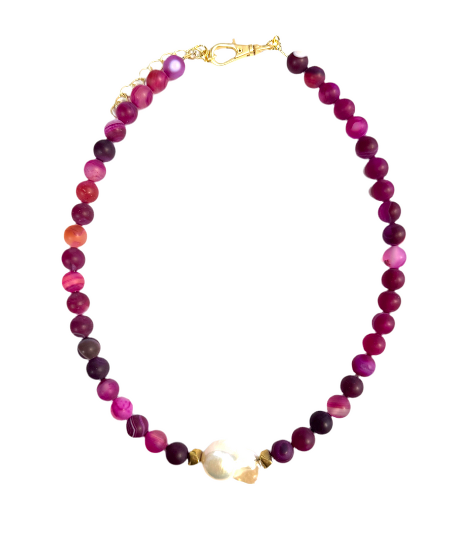 The Kamryn Necklace - Fuchsia Marble
