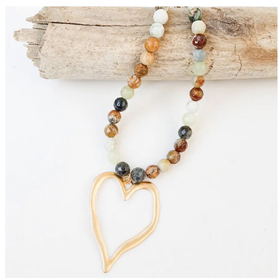 Gemstone Beaded Necklace w/ / XL Heart - Meadow