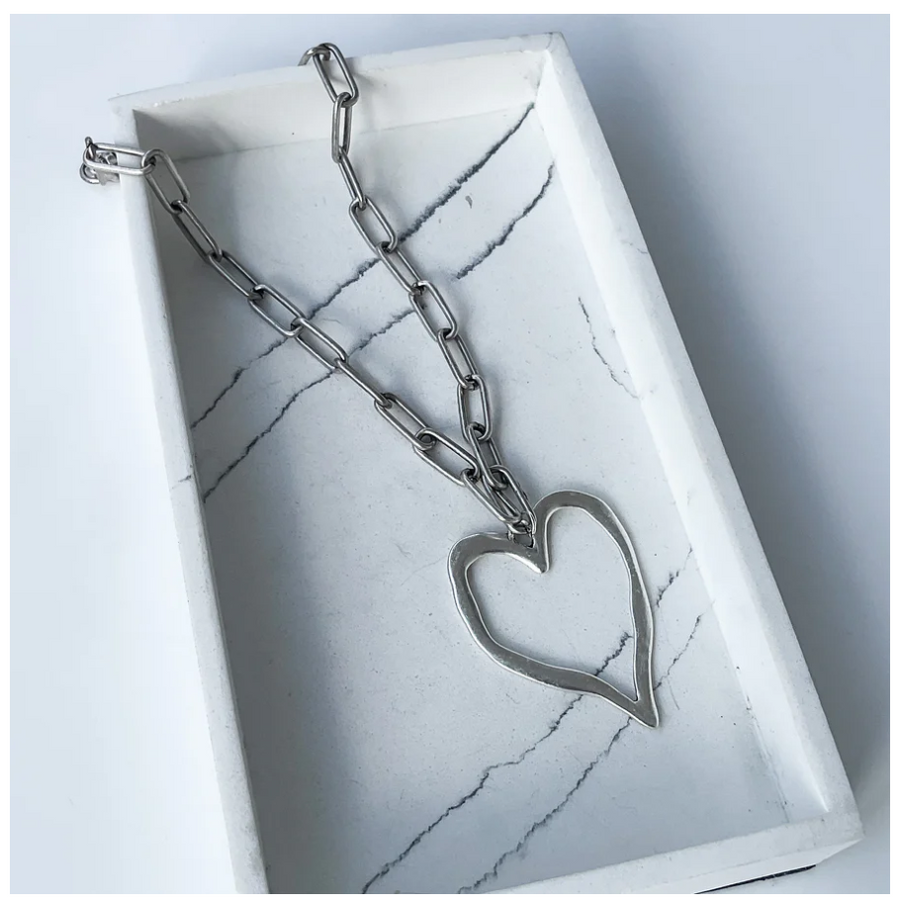 Paperclip with Heart Necklace - 18" Silver Heart