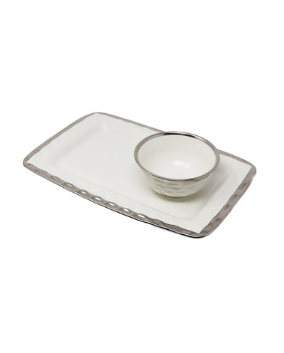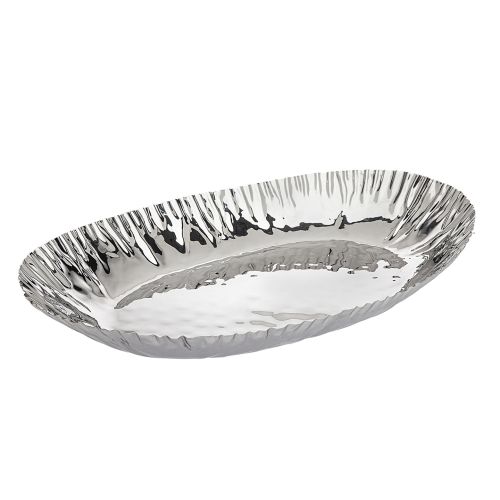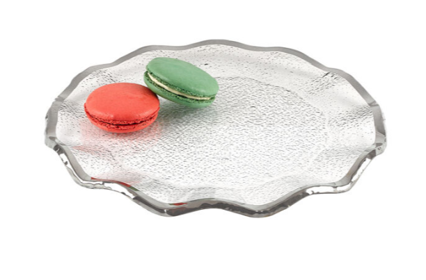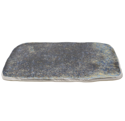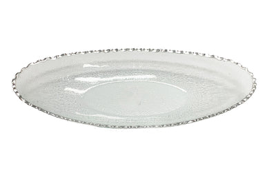 Silver Edge Rectangular Hand Painted Blown Glass 18 x 6.5″ Serving Platter