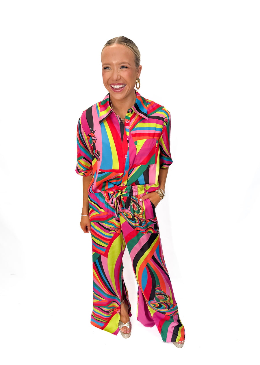 Add a touch of playful sophistication to your wardrobe with our new Remi Top! Offering a cropped, relaxed fit with a flattering button down closure and front pocket. Pair with our Penny Pant for the perfect head to toe look!