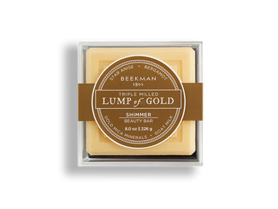 Suds up and stay gold. This soap with a sudsy lather is triple-milled to ensure lasting moisture. Flecks of gold mica minerals invigorate dry skin for a beautiful, sparkling finish.