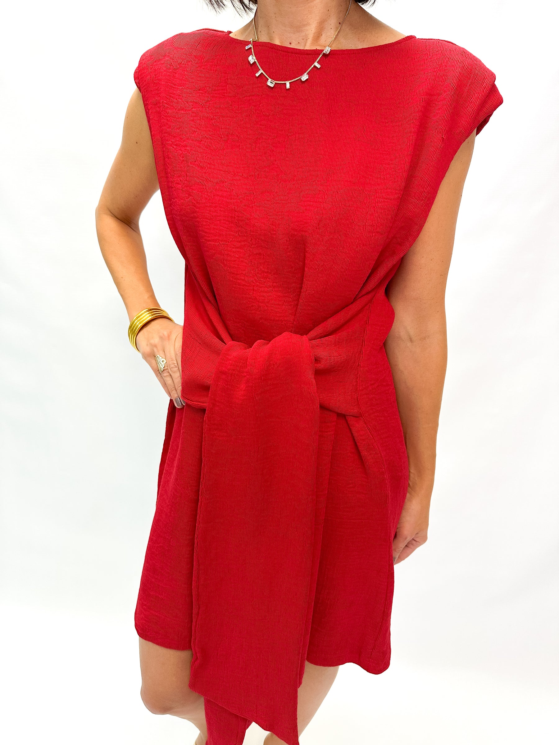 The Del Mar Dress evokes simple sophistication, with a sheath shape and structured shoulder detailing. The Del Mar can be worn tied both in the front for an easy cinched look or from behind creating a fantastic bow moment in the back. The versatility and ease of this style will have you wearing her for any occasion.