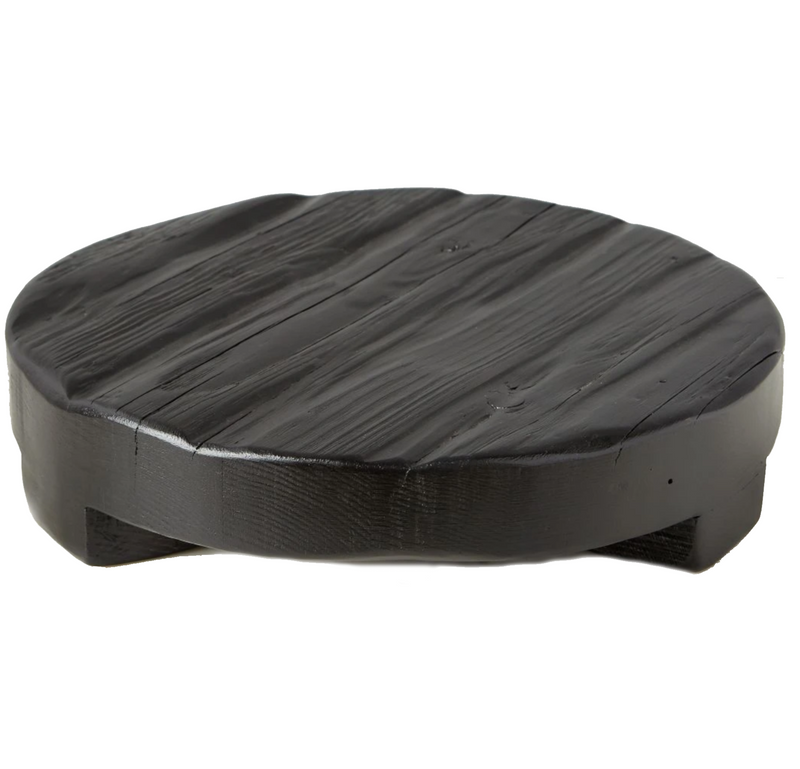 Handcrafted from reclaimed wood, the round wooden trivet, is a must-have decorative accent for any table top. The round wooden board’s black coloring is just a bonus, the riser can also be utilized as a hot pad and can be paired with hot or cold dishes straight from the oven or fridge.