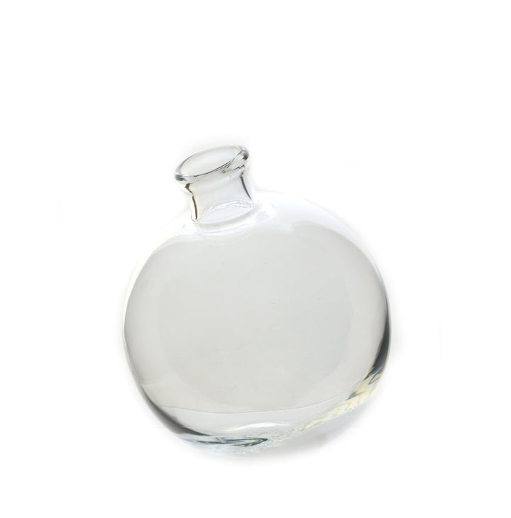 This uniquely designed round bud vase is not only sophisticated in both color and shape, but also is hand blown by true artisans in Europe. The glass sphere is elegantly imperfect and designed to sit slightly off center on your table top. Not your average flower vase, this decorative sphere makes for the perfect flower holder. For a more contemporary application, this unique glass vase can be filled with candies or nuts and used as a dispenser.