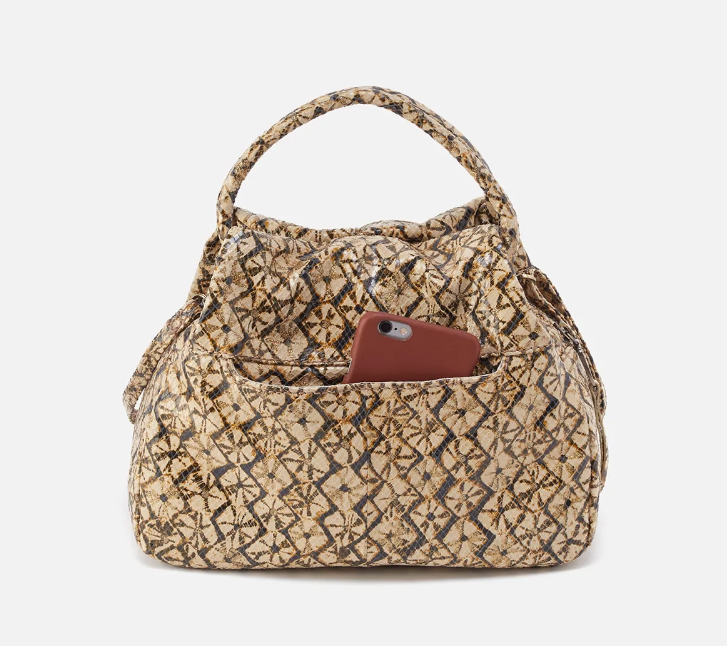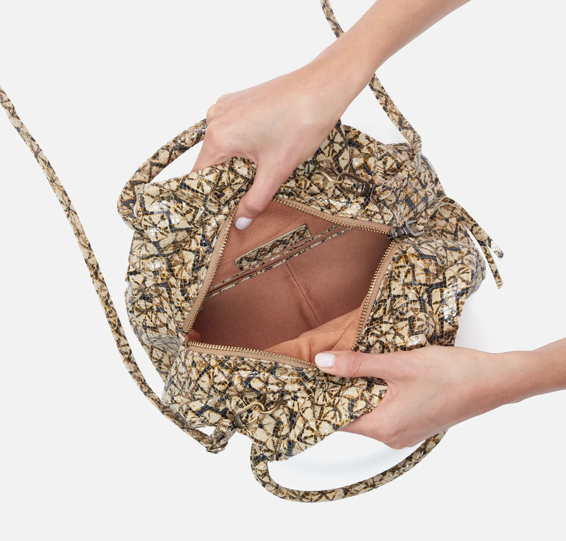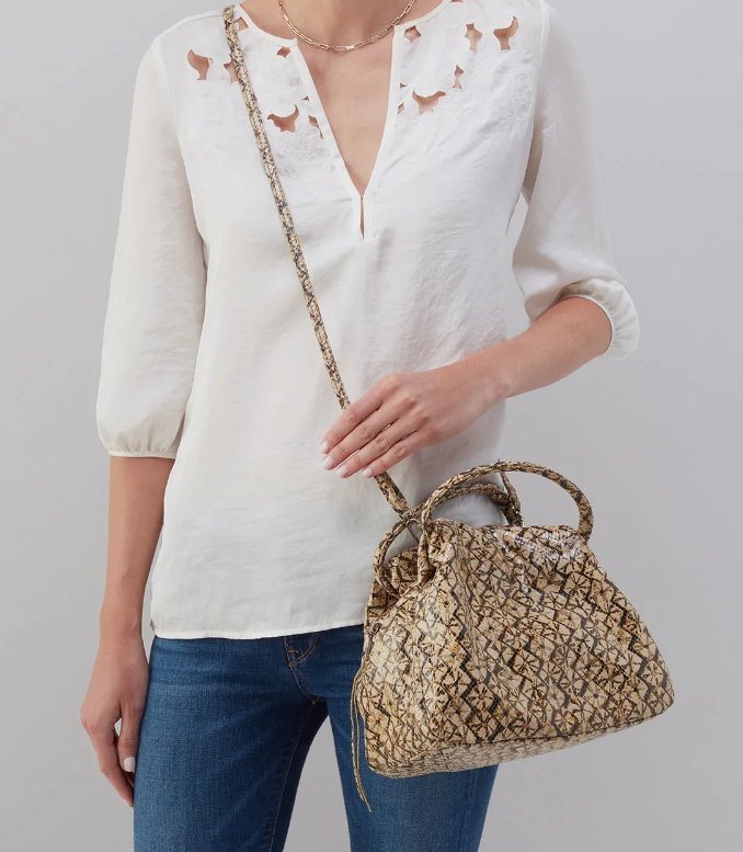 A relaxed top handle style with a convenient and removable crossbody strap.