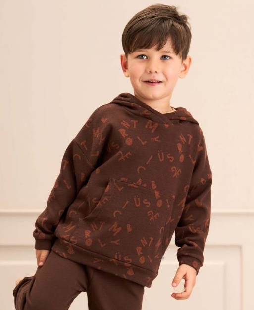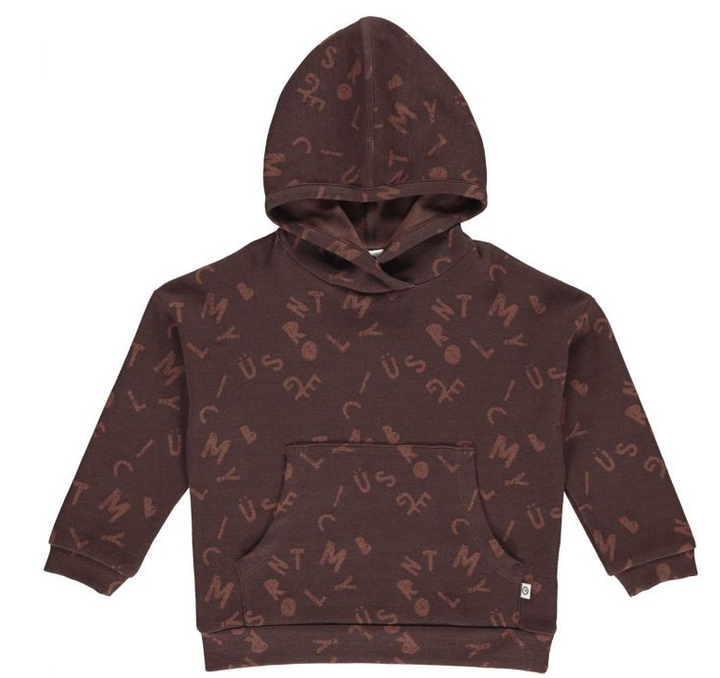 Nice soft sweatshirt with a hood and a front pocket. The hoodie has a smart all-over print of letters. Lovely, soft quality, and without cords for your child's safety.