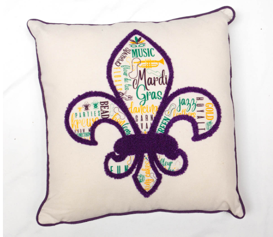 This Mardi Gras pillow featuring a Fleur de Lis design is just what you need to decorate your home with for the season! It makes a great gift item too!