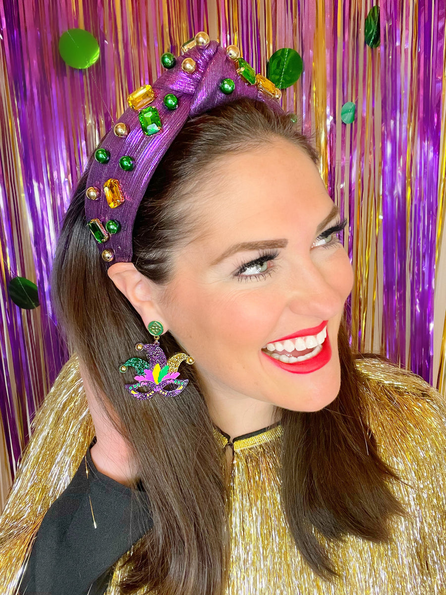 These Mardi Gras Jester Earrings with Crystals are so fun & bold! They will be loved for Mardi Gras!