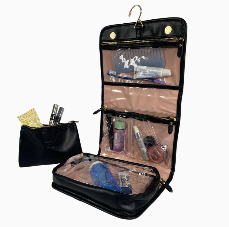 Our best-selling Timeless Quilted Getaway Toiletry Case is inspired by classic 'Chanel.' Perfect for travel, this chic accessory keeps your toiletries secure and beautifully organized. With the top folding hanger, your items are easily visible and accessible, no matter where your travels take you. All pockets have a clear-view design, allowing you to effortlessly admire your essentials without the need to unzip. Additionally, the bottom pocket includes a removable zipper pouch for added storage capacity.