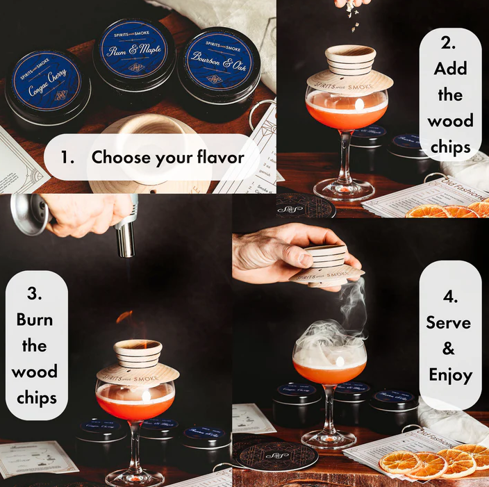 Change the look and flavor of your cocktail! Spirits with Smoke's Smoking Saucer Set is made from sustainably sourced lumber chosen for its unique aromatic flavor. All our saucers are crafted by local artisans in North America and have been tested for smoking up to 300 cocktails. The Smoking Saucer Set is easy for travel and is proven to ramp up your smoky drink game. We guarantee it!