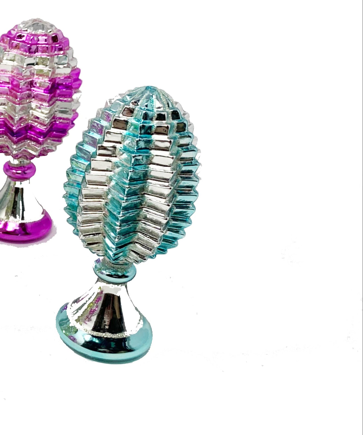 These Striped Pedestal Egg are in an assortment of colors and two shapes! They will make an Easter tablescape unique & beautiful!