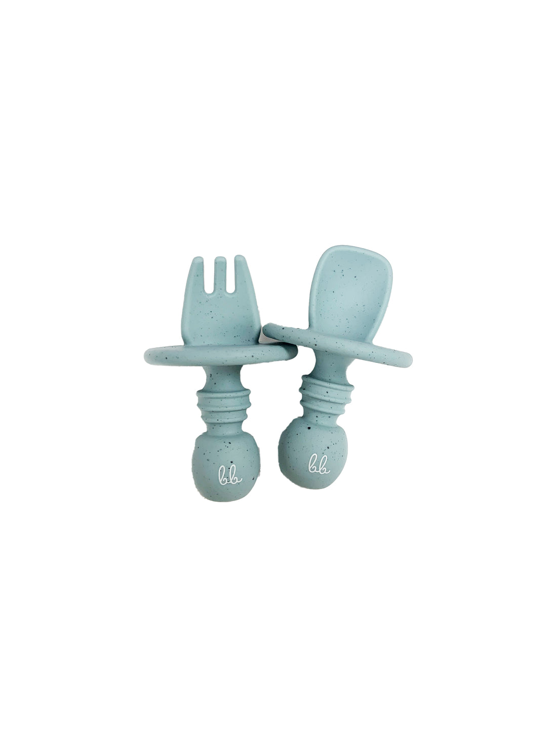 The silitensil set includes both a fork and spoon set for babies between 6 and 14 months. Our idea was to help parents be able to provide a teether and utensil for babies as they begin the journey to fine motor skills. Baby will learn to hold a fork and spoon but also give them the ability to teether and chew from our baby safe utensils. These are designed for soft pureed food items. The idea is for babies to be able to avoid hurting themselves but also learn the sensation of how to hold a fork and spoon. Our set also has a design of a plate on each utensil to avoid the baby from putting the utensil too far deep in their mouth and avoid gagging.